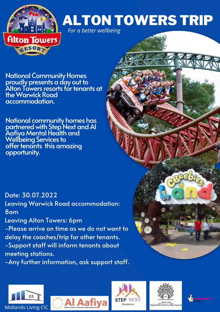- A Day of Thrills and Laughter: The trip to Alton Towers brought an abundance of thrills and laughter for Step Next tenants. From adrenaline-pumping roller coasters to entertaining shows and attractions, the amusement park offered a diverse range of experiences that catered to the diverse preferences of our tenants.